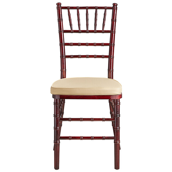 Add elegance to your event with this Lancaster Table & Seating mahogany Chiavari chair with gold cushion!