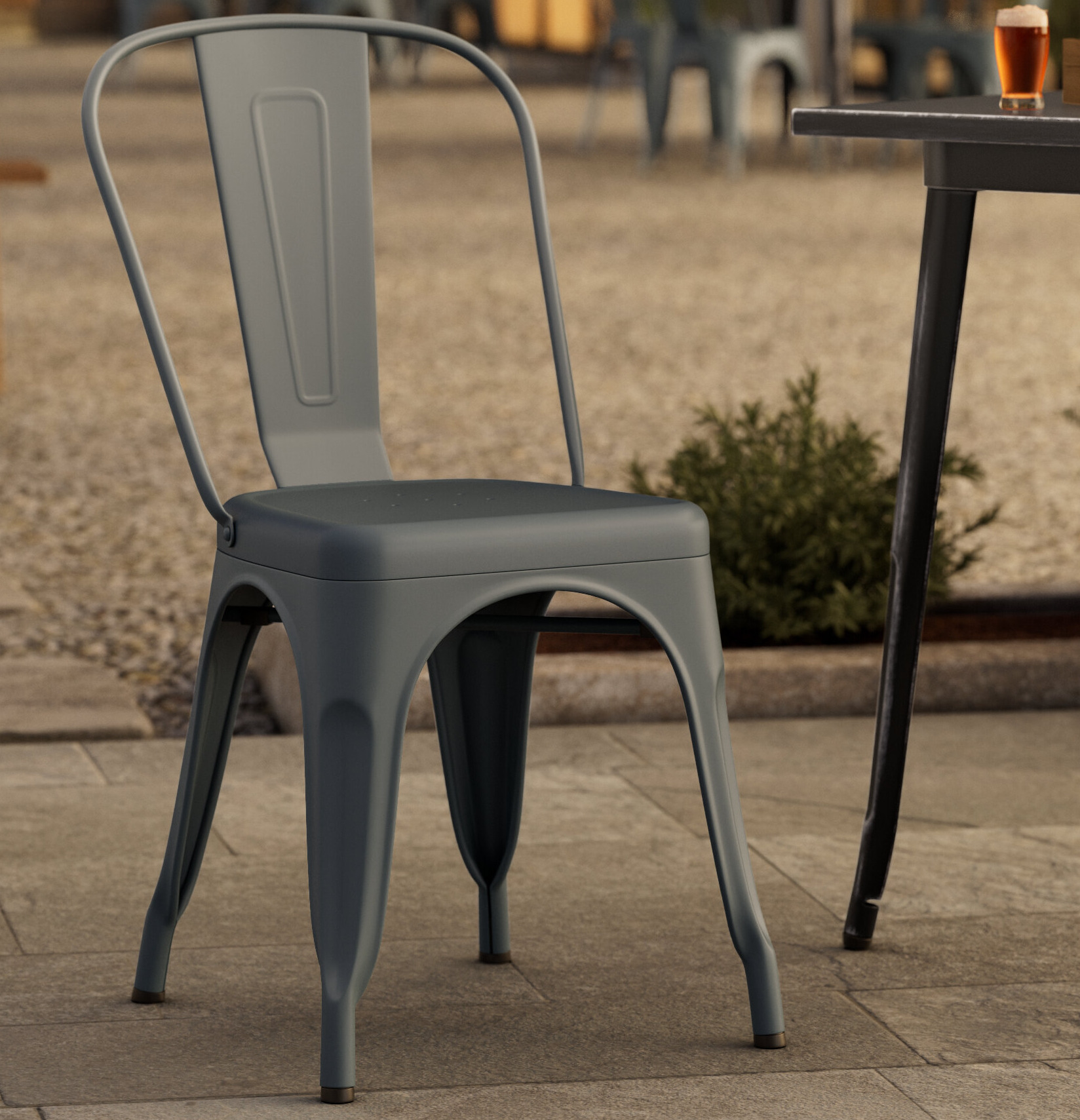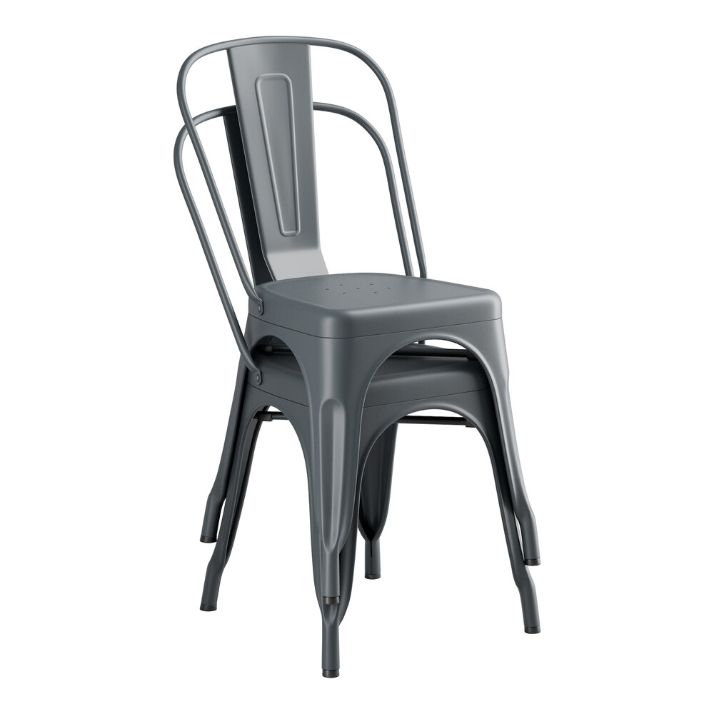This chair is made of durable steel and coated to withstand years of use. The charcoal color adds a sleek, modern touch to any setting and is sure to be a contemporary design choice that guests love. Comfortable and stylish, this strong yet lightweight chair is an excellent choice for your indoor or outdoor dining area. To save time and hassle, this chair ships fully assembled.