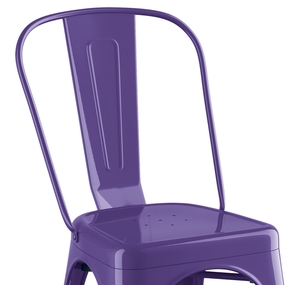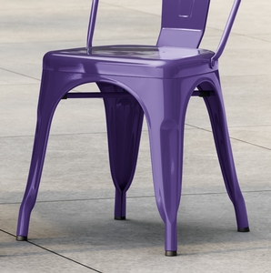 This chair is made of durable steel and double coated to withstand years of use. The vibrant purple color adds a fun, colorful touch to any setting and is sure to be a contemporary design choice that guests love. Comfortable and stylish, this strong yet lightweight chair is an excellent choice for your indoor or outdoor dining area. To save time and hassle, this chair ships fully assembled.