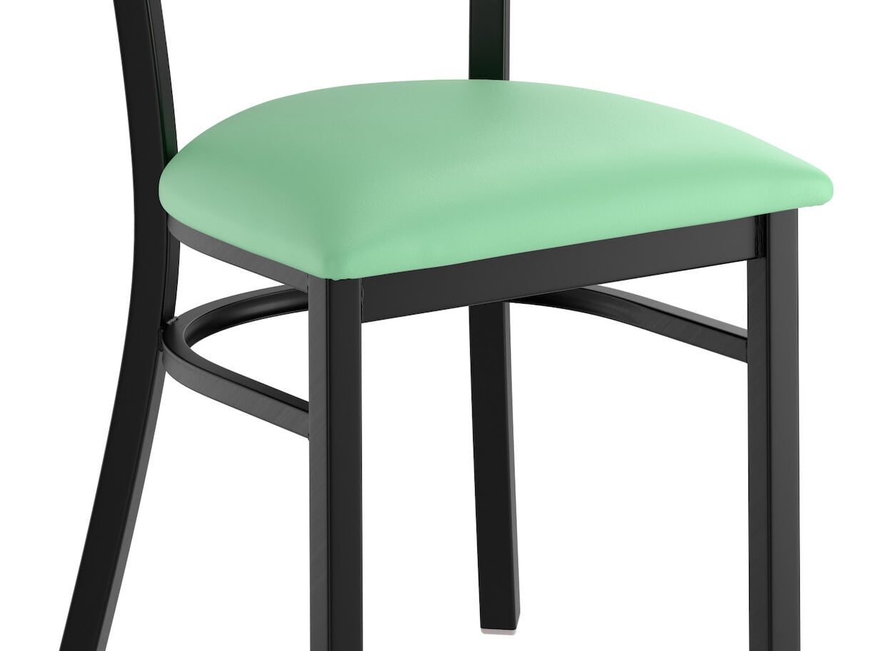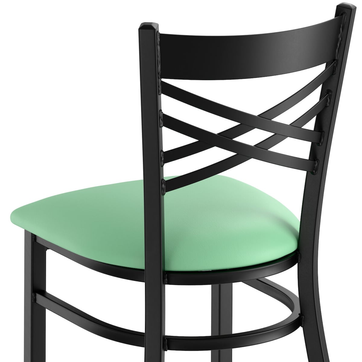 Black Finish Cross Back Chair with 2 1/2" Seafoam Vinyl Padded Seat - Assembled