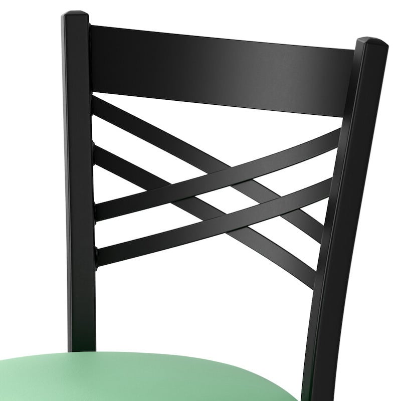 Seat your guests in comfort and style with this Lancaster Table & Seating black finish cross back chair with 2 1/2" seafoam vinyl padded seat.