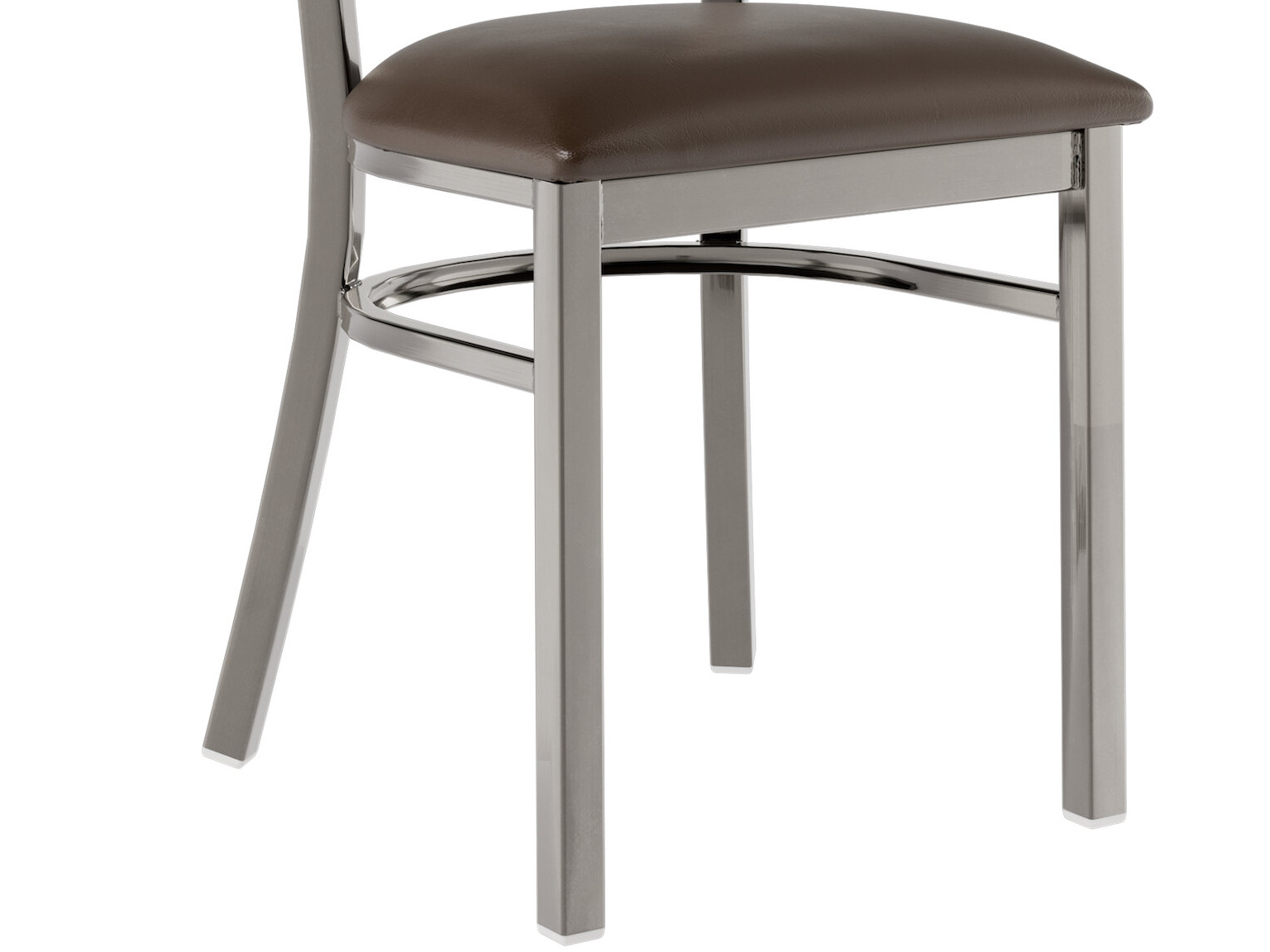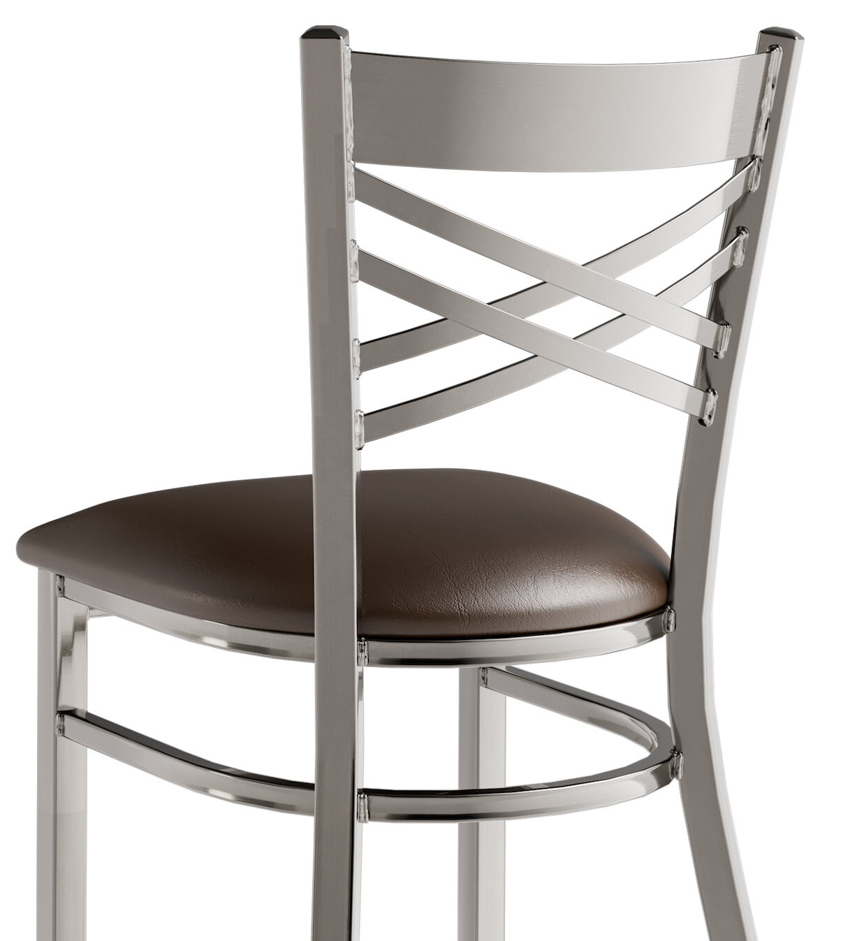 This chair's sleek padded seat combines with its contemporary cross back steel frame to instill a modern look in any location. Plus, since this chair's back is contoured for a customer's back, it will provide comfort while maintaining a distinct appearance.