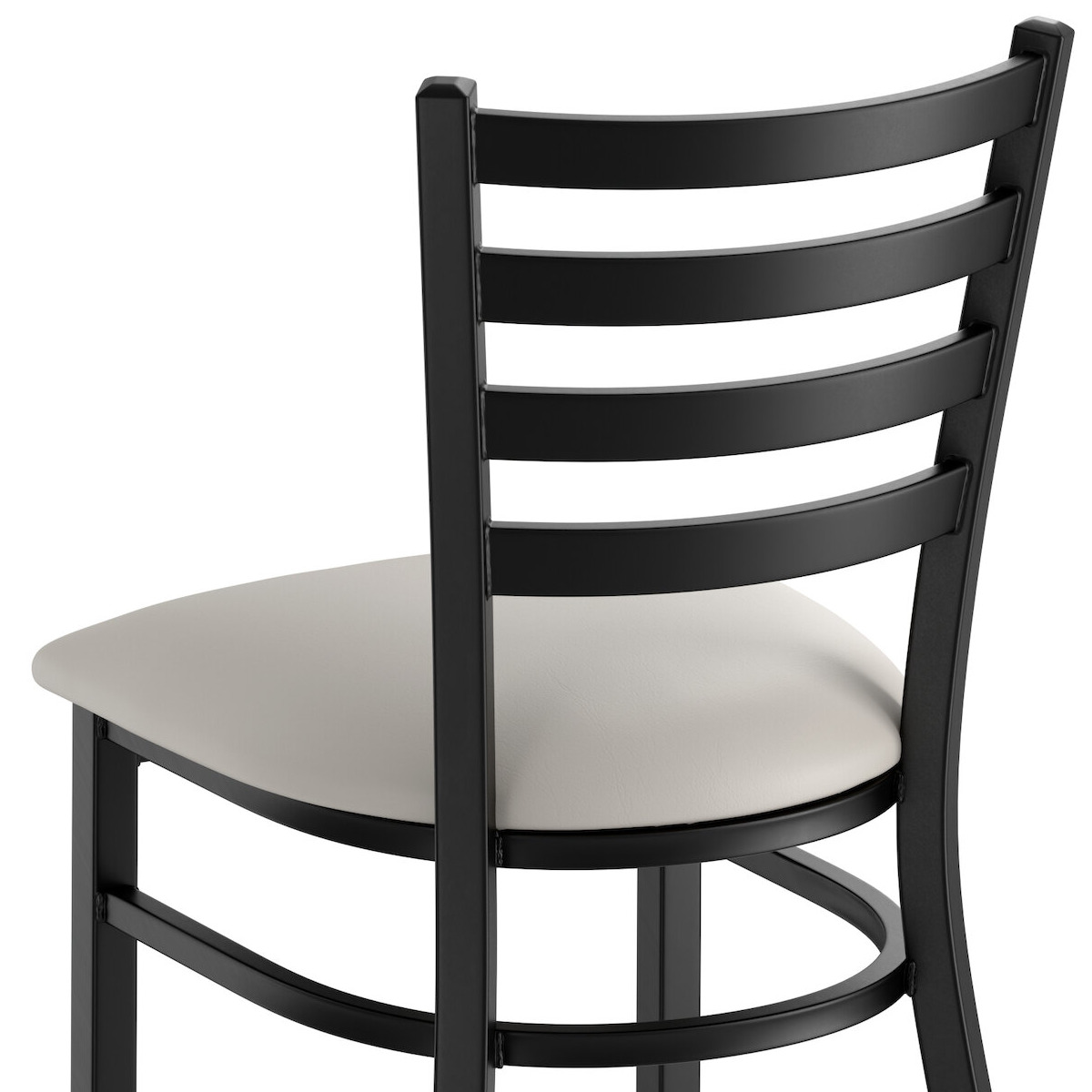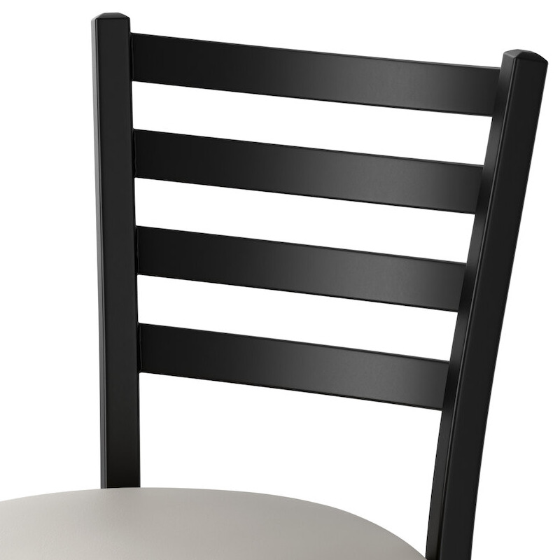 Seat your guests in comfort and style with this Lancaster Table & Seating black finish ladder back chair with 2 1/2" light gray vinyl padded seat.