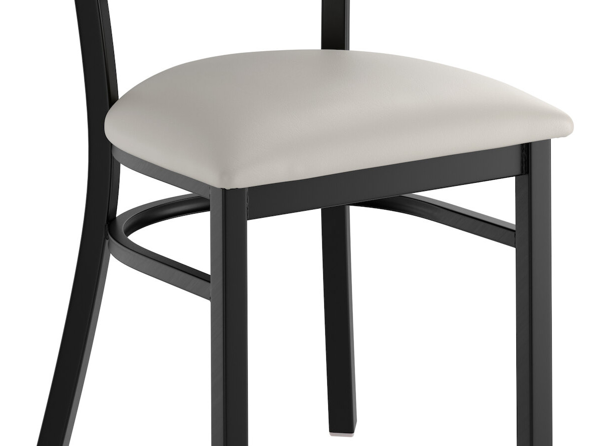 This chair's sleek padded seat combines with its contemporary ladder back steel frame to instill a modern look in any location. Plus, since this chair's back is contoured for a customer's back, it will provide comfort while maintaining a distinct appearance.