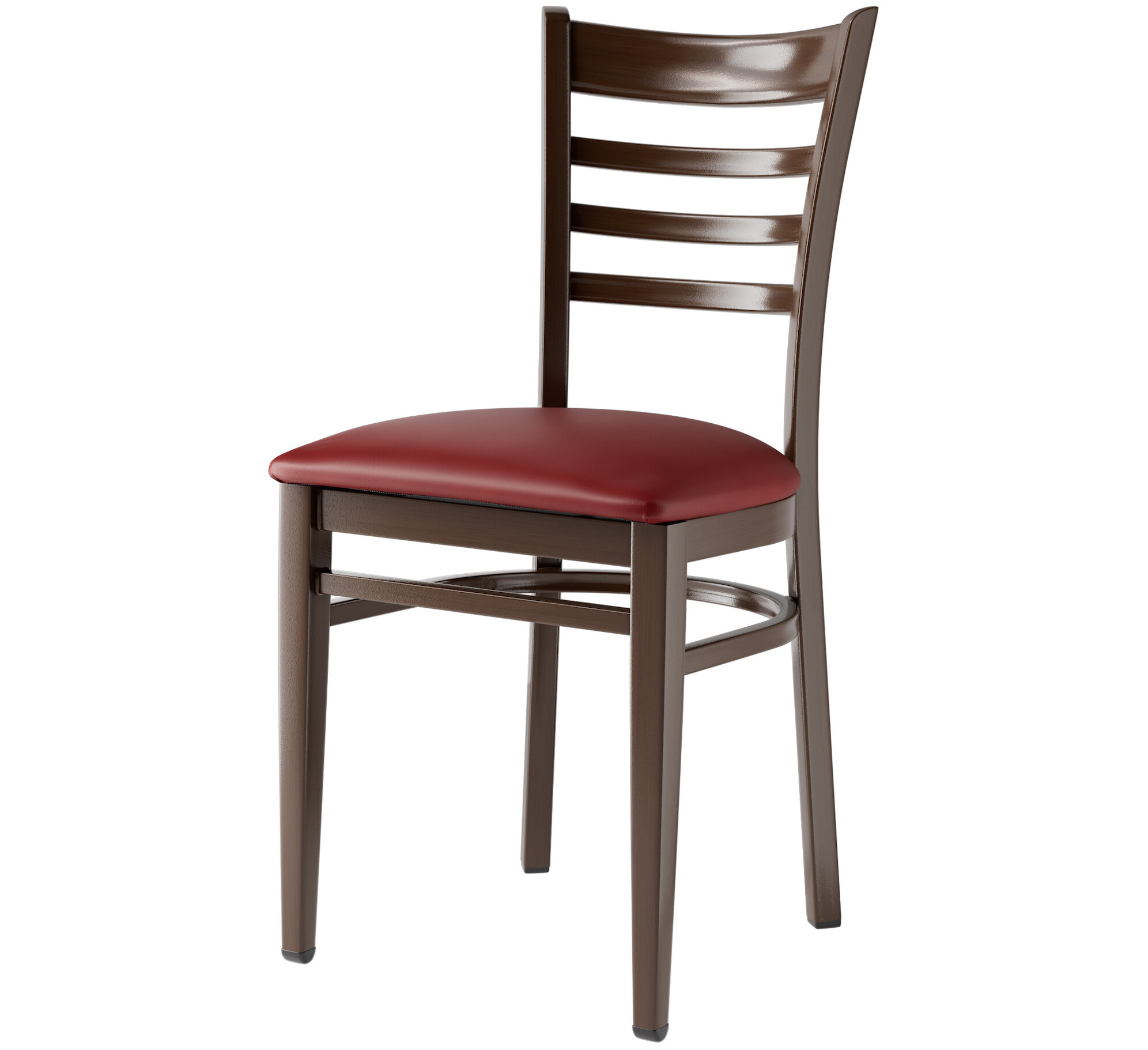 Seat your guests in comfort and style with this Lancaster Table & Seating Spartan metal ladder back chair with dark walnut wood grain finish and 2 1/2" burgundy vinyl padded seat.