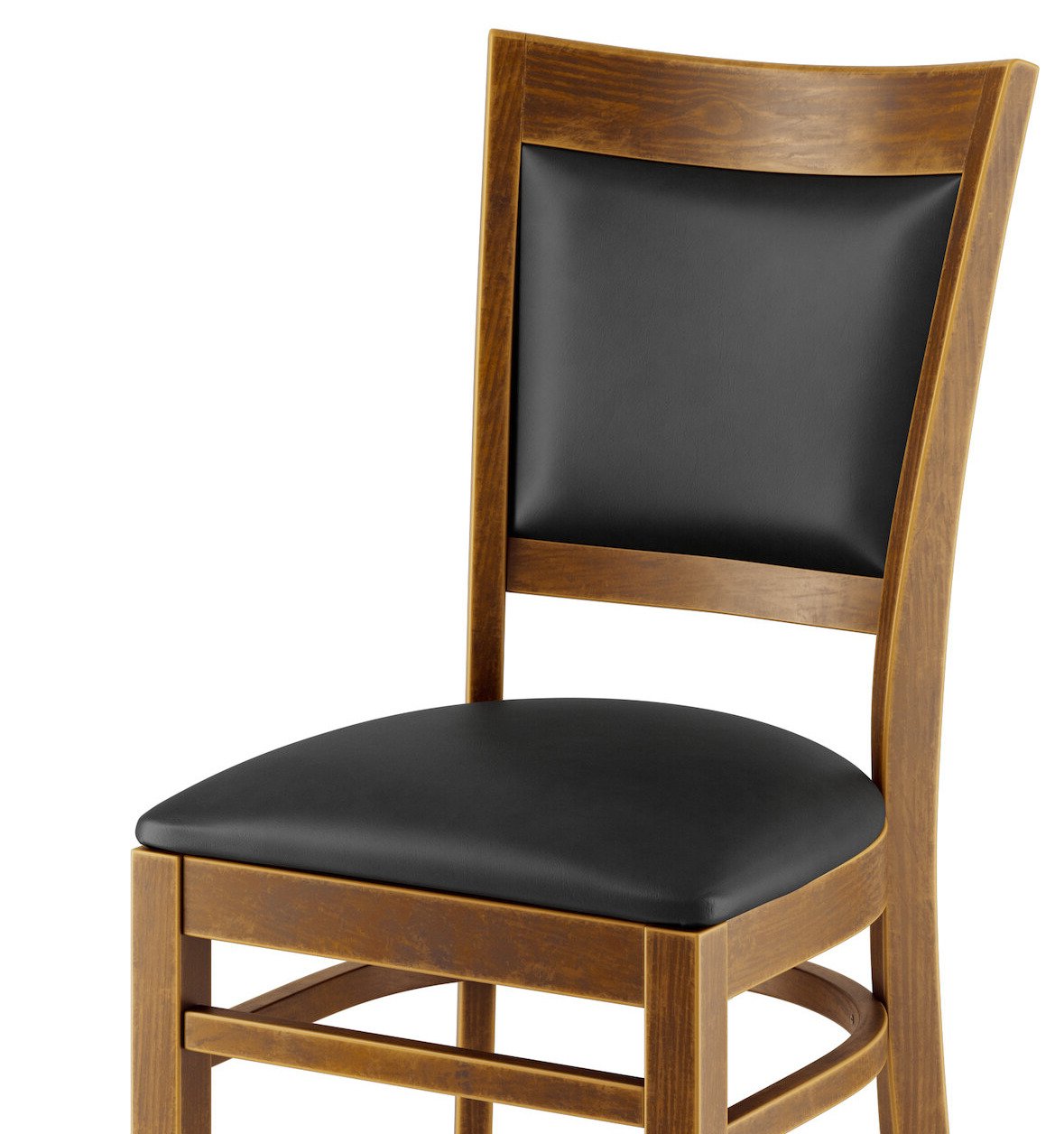 This chair's sleek padded back and seat combines with its attractive wooden frame to instill a unique look in any location. At an ideal height for standard dining table height seating, this chair is a versatile option for any restaurant, bar, deli, or coffee shop. Plus, each leg comes with an integrated glide to protect your floors from scuffing.
