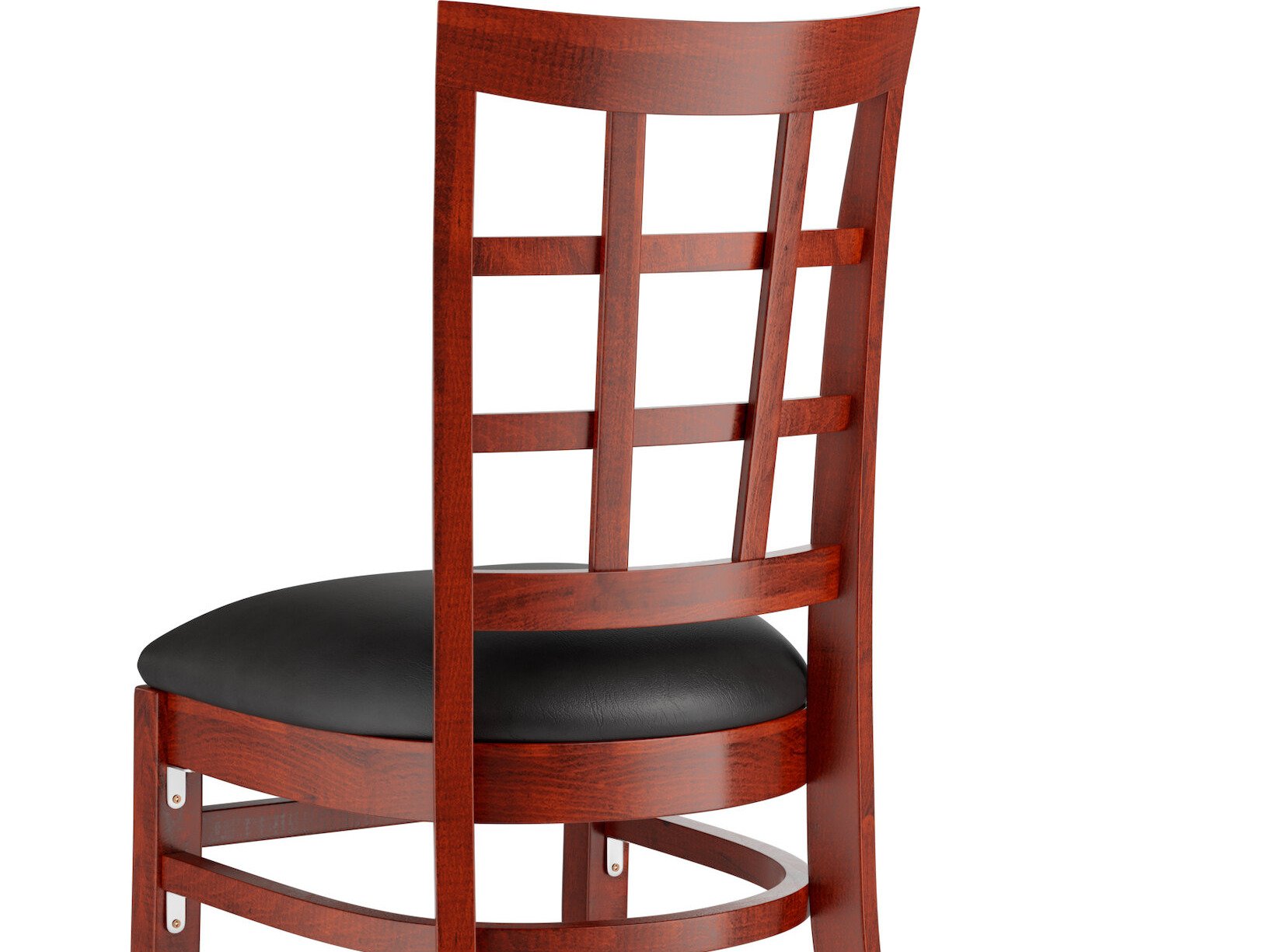 Mahogany Finish Wood Window Back Chair with Black Vinyl Seat - Detached Seat