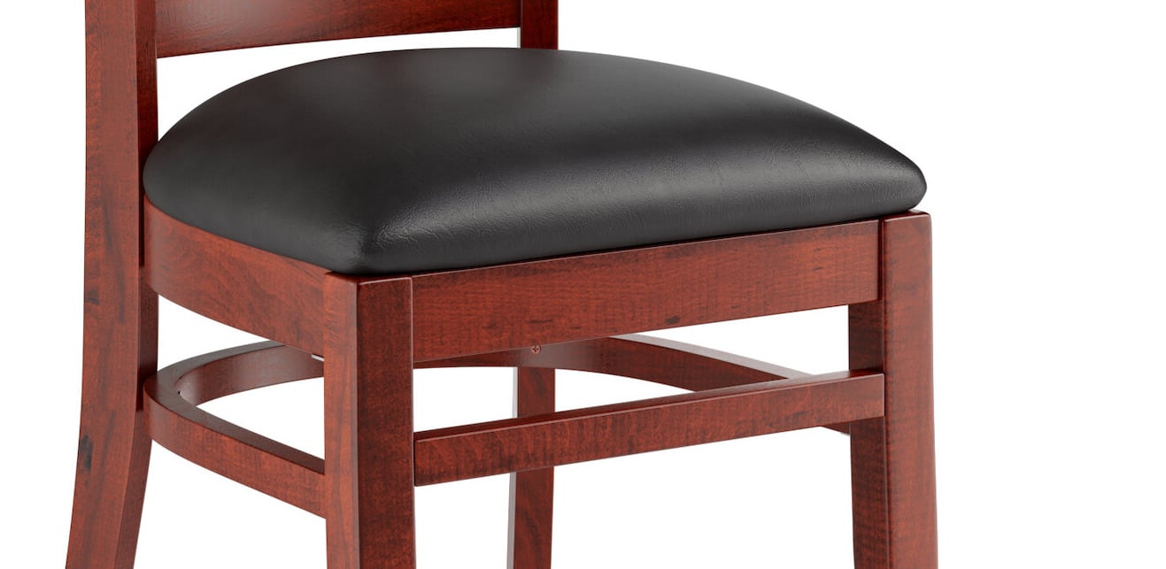 This chair's sleek padded seat and stylish mahogany finish combine with its attractive wooden frame to instill a unique look in any location. Plus, since this chair's back is contoured for a customer's back, it will provide comfort while maintaining a distinct appearance.
