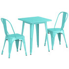 Alloy 23 1/2" x 23 1/2" Pearl White Standard Height Outdoor Table with 2 Cafe Chairs