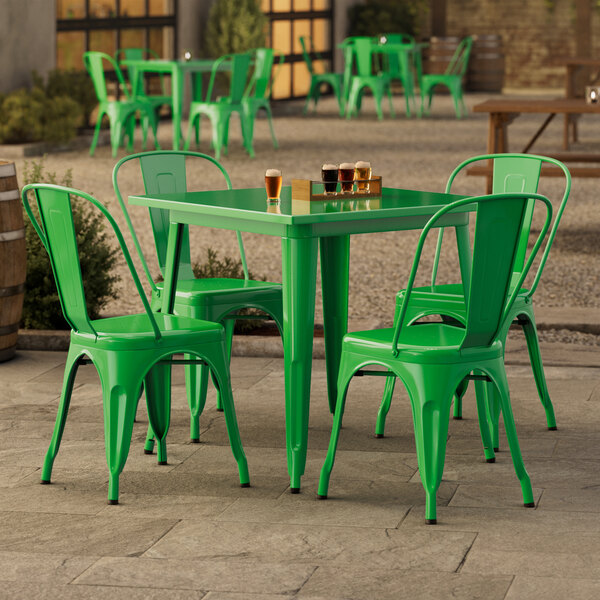 Alloy 31 1/2" x 31 1/2" Jade Green Standard Height Outdoor Table with 4 Cafe Chairs