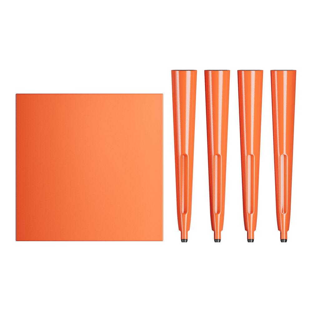 This table is made of durable steel and coated to withstand years of use. The vibrant amber-orange color adds a fun, colorful touch to any setting and is sure to be a contemporary design choice that guests love. Comfortable and stylish, this strong yet lightweight standard-height table is an excellent choice for your indoor or outdoor dining area. To save you money on shipping costs, this table ships unassembled. All required assembly hardware is included so you can quickly set it up in its proper space and let your guests enjoy!