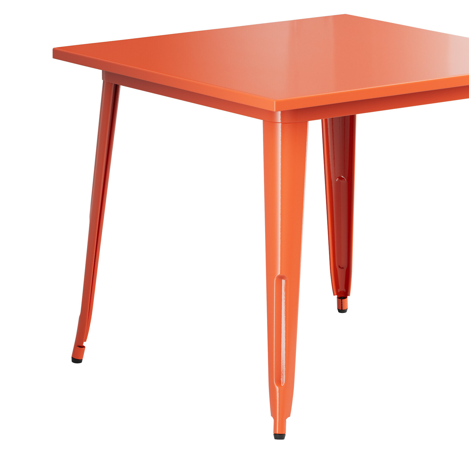 This table is made of durable steel and coated to withstand years of use. The vibrant amber-orange color adds a fun, colorful touch to any setting and is sure to be a contemporary design choice that guests love. Comfortable and stylish, this strong yet lightweight standard-height table is an excellent choice for your indoor or outdoor dining area. To save you money on shipping costs, this table ships unassembled. All required assembly hardware is included so you can quickly set it up in its proper space and let your guests enjoy!
