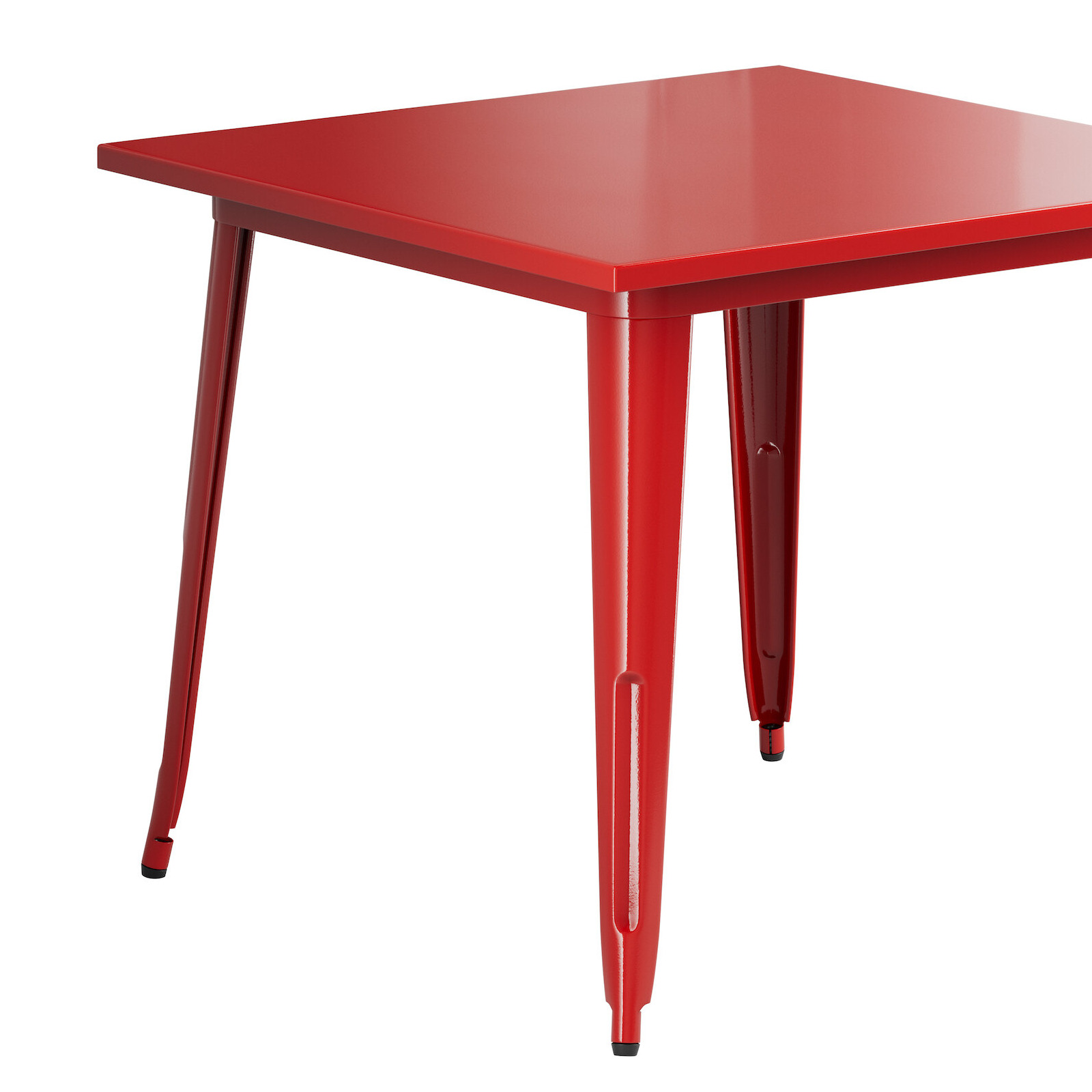 This table is made of durable steel and coated to withstand years of use. The vibrant ruby-red color adds a fun, colorful touch to any setting and is sure to be a contemporary design choice that guests love. Comfortable and stylish, this strong yet lightweight standard-height table is an excellent choice for your indoor or outdoor dining area. To save you money on shipping costs, this table ships unassembled. All required assembly hardware is included so you can quickly set it up in its proper space and let your guests enjoy!