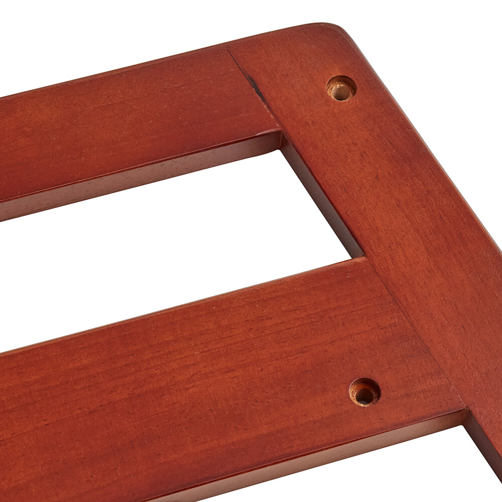 The classic mahogany color of this chair adds a nice visual appeal to your dining set up and complements virtually any dining decor. Add this high chair to your restaurant to accommodate your youngest guests in safety and style
