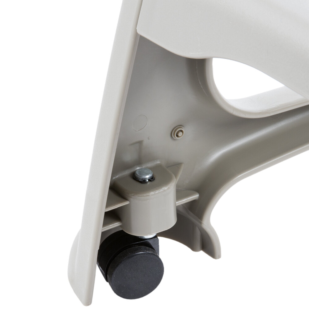 Perfect for family friendly restaurants, this Lancaster Table & Seating gray plastic high chair with wheels gives your youngest guests a seat at the table.