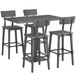 Rural countryside meets urban city with this Lancaster Table & Seating industrial 30" x 48" slate gray solid wood live edge bar height table with 4 bar stools.