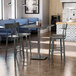 Each bar stool boasts a sturdy steel frame for unmatched durability in your dining room. They can hold up to 350 lb. of weight thanks to the metal frame and supports under the seat. The seat, back, and legs are made of solid beechwood, which stands up better to daily use and is able to better resist gouging and chipping compared to other types of wood. Each bar stool also features a rectangular back that's contoured to provide extra support to your customers' upper backs. Plus, the built-in footrest gives customers a place to rest their legs.
