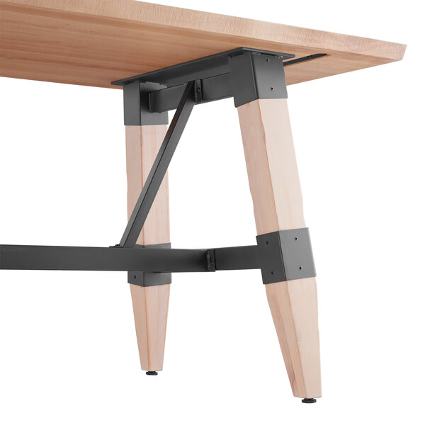 The included table base features tapered, solid wood legs fitted into a steel trestle frame for a base that is both sleek and exceptionally sturdy. The wide trestle design helps prevent the table from wobbling, while the adjustable feet add stability and help protect your floors from scuffs and scratches. Thanks to its generous weight capacity, this table base will provide a reliable foundation for heavy meals, dinnerware, and decor. The table base elevates your table top to a comfortable height, ensuring it stays steady and balanced while guests enjoy your signature drinks and dishes.