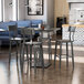 Rural countryside meets urban city with this Lancaster Table & Seating industrial 36" square slate gray solid wood live edge bar height table with 4 bar stools.