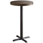 24" Round Bar Height Wood Butcher Block Table with Espresso Finish and Cast Iron Cross Base Plate
