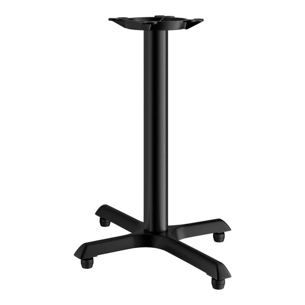 Whether you're just opening your first restaurant or are looking to replace the old tables in your bar, we've got the perfect product for you. This black standard height table base comes ready to install with a set of self-leveling feet that eliminate wobbly tables, allow you to easily align multiple tables, and make it easy to move tables around without the need to manually adjust the feet to accommodate uneven places in your floors. With this table base, you can save time for your staff and create a comfortable dining area for customers in your establishment!