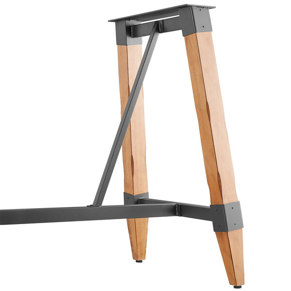 This table base combines the natural look of wood with rugged metal accents to add a rustic element with contemporary flair to your establishment. The perfect piece for your winery, brewery, or farm-to-table eatery, this table base elevates compatible table tops to a comfortable height, ensuring tables stay steady and balanced while guests enjoy your signature drinks and dishes.