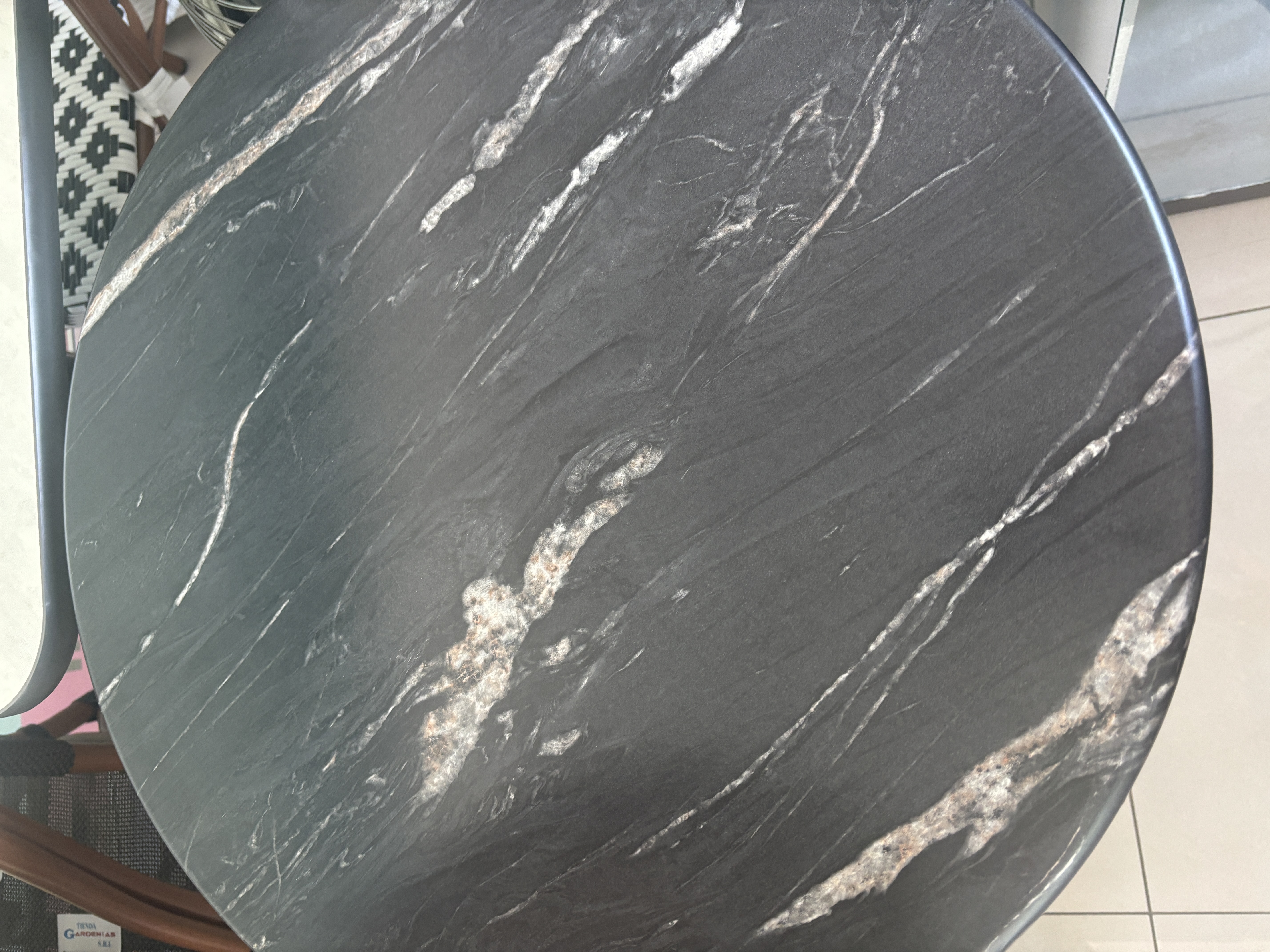 This round table top has a smooth letizia finish that offers the classic look of faux marble at a fraction of the cost. Whether you're looking to revamp your restaurant's front-of-house space or enhance the appearance of your cafe patio or deck, this table top will spotlight the beauty of nature while focusing on an elegant dining experience in order to bring you the best of both worlds! This table top can be used with compatible Lancaster Table & Seating Excalibur table bases (sold separately). A screw length of 3/4" is recommended for installation (hardware sold separately).