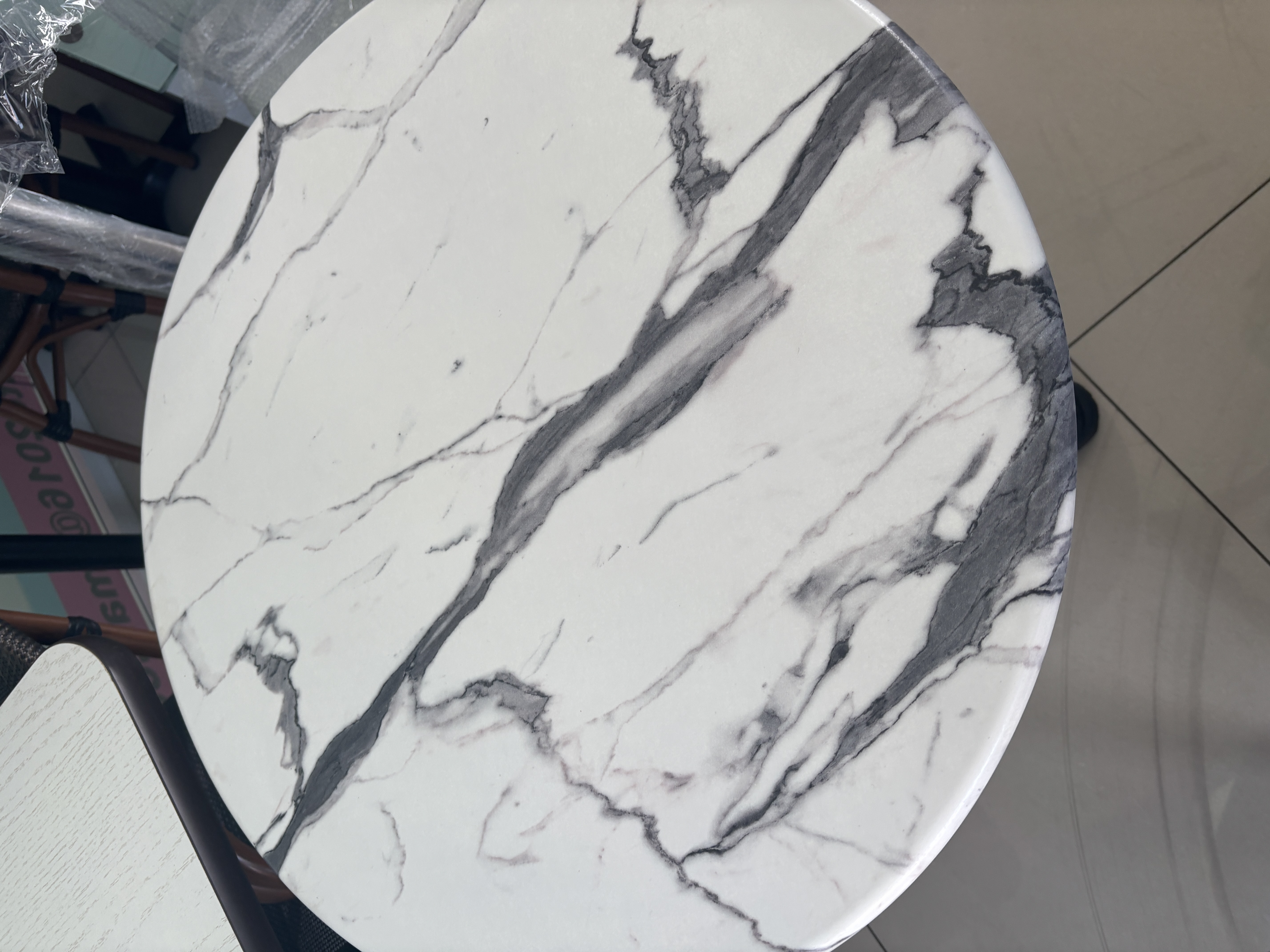 This round table top has a smooth versilla finish that offers the classic look of marble at a fraction of the cost. Whether you're looking to revamp your restaurant's front-of-house space or enhance the appearance of your cafe patio or deck, this table top will spotlight the beauty of nature while focusing on an elegant dining experience in order to bring you the best of both worlds! This table top can be used with compatible Lancaster Table & Seating Excalibur table bases (sold separately). A screw length of 3/4" is recommended for installation (hardware sold separately).
