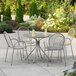 Add functionality and pizzazz to your outdoor dining with the Lancaster Table & Seating Harbor gray 36" round outdoor standard height table with modern legs and 4 arm chairs!