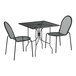 Add functionality and pizzazz to your outdoor dining with the Lancaster Table & Seating Harbor black 30" square outdoor standard height table with ornate legs and 2 side chairs!