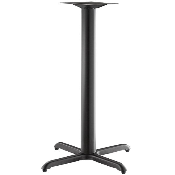 This cross column base can easily be installed with select Lancaster Table & Seating Excalibur table tops (sold separately) to elevate them to bar height and to ensure tables stay steady and balanced while guests enjoy your signature drinks and dishes. Wherever this attractive base is placed, and whatever top it supports, it's sure to stand steady and strong for years to come. Made of strong stamped steel with a sleek and resilient black e-coating, this durable unit is well equipped to weather the elements and resist corrosion.