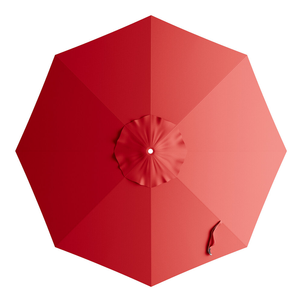 Enjoy the outdoors under the pleasant shade of this Lancaster Table & Seating 9' carnation red crank lift auto tilt black aluminum umbrella!