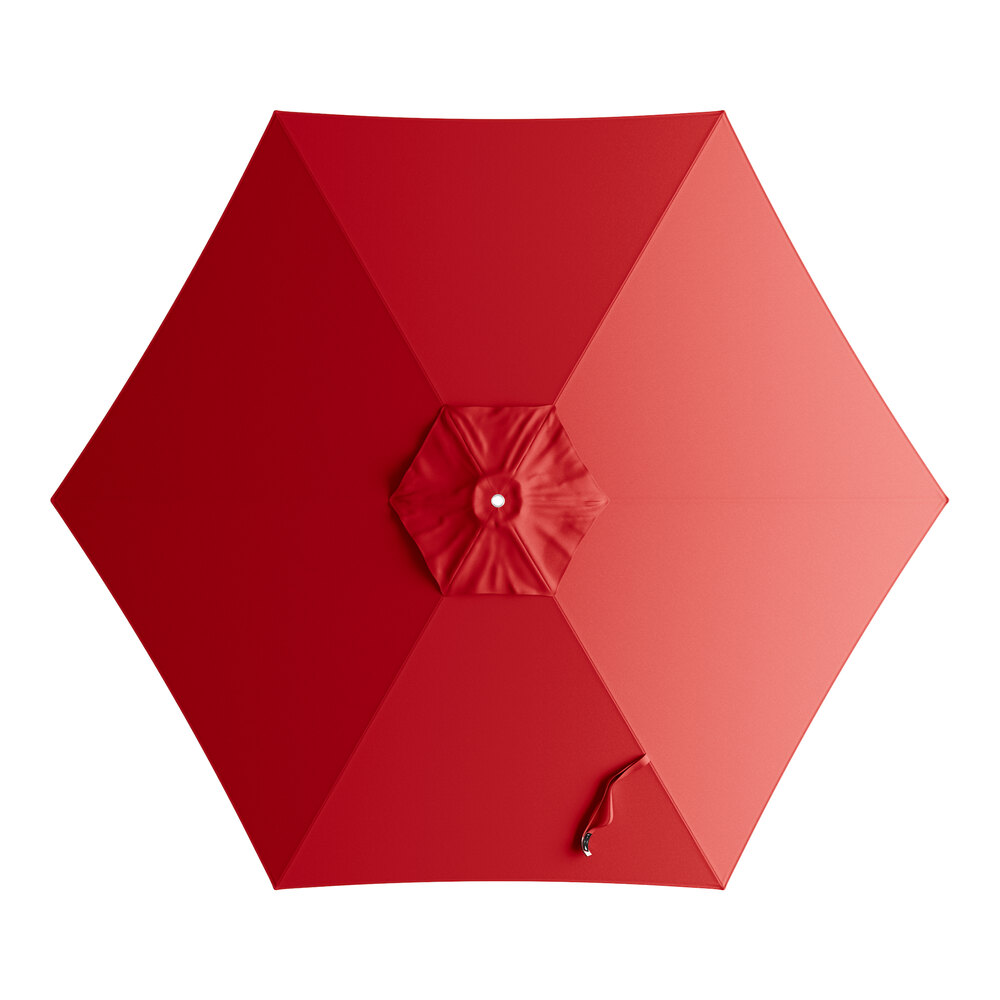 This umbrella's silver powder-coated aluminum frame is built to withstand consistent use in your establishment. Its 1 1/2" pole diameter makes it compatible with select umbrella bases (sold separately), and you can prolong the life of your canopy with a compatible umbrella cover (sold separately). Reach for this Lancaster Table & Seating umbrella to enhance your outdoor space and keep guests happy and comfortable!
