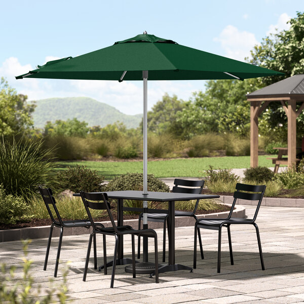 This umbrella's silver powder-coated aluminum frame is built to withstand consistent use in your establishment. Its 1 1/2" pole diameter makes it compatible with select umbrella bases (sold separately), and you can prolong the life of your canopy with a compatible umbrella cover (sold separately). Reach for this Lancaster Table & Seating umbrella to enhance your outdoor space and keep guests happy and comfortable!