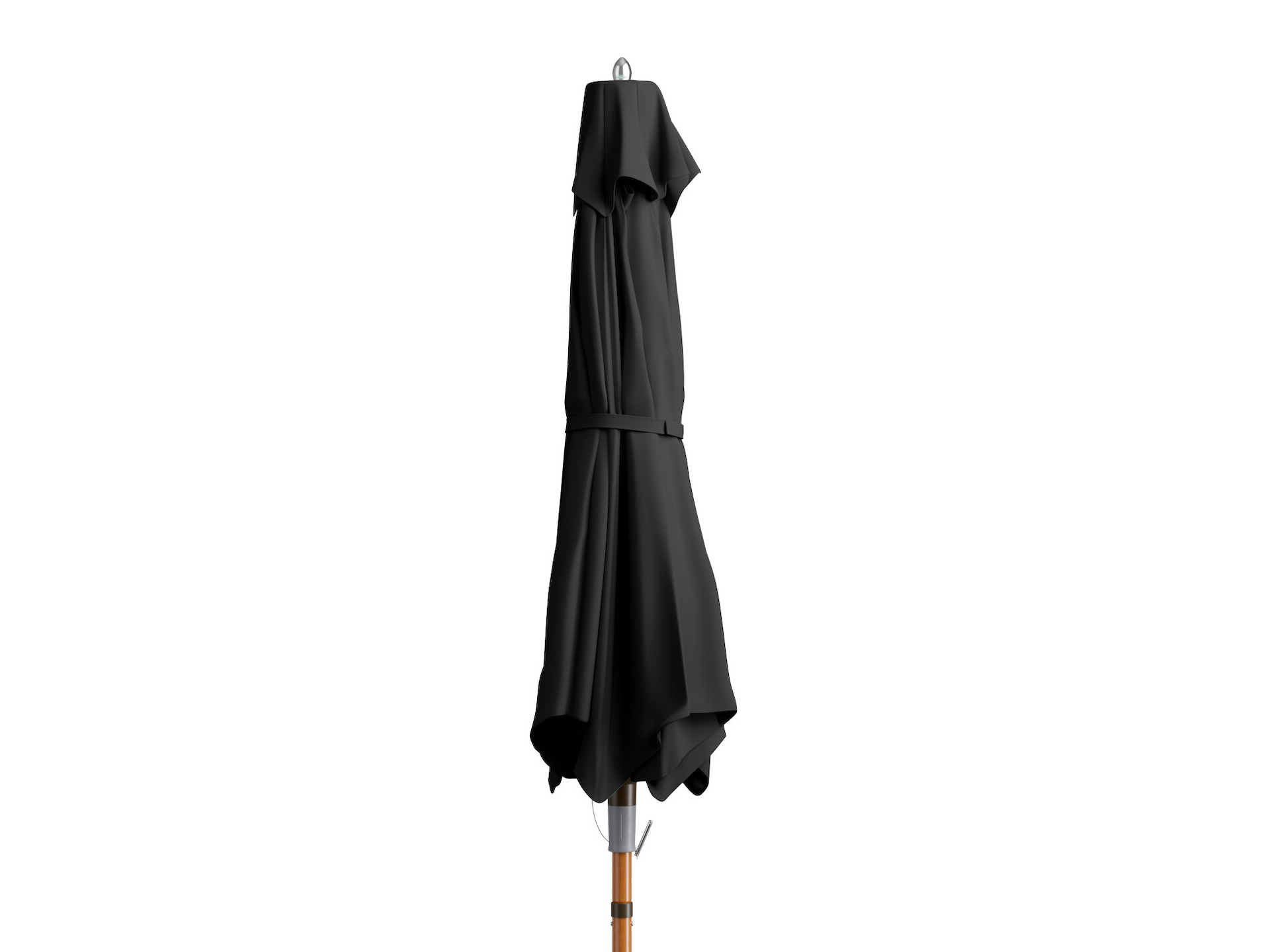 9' Round Raven Black Push Lift Woodgrain Aluminum Umbrella
