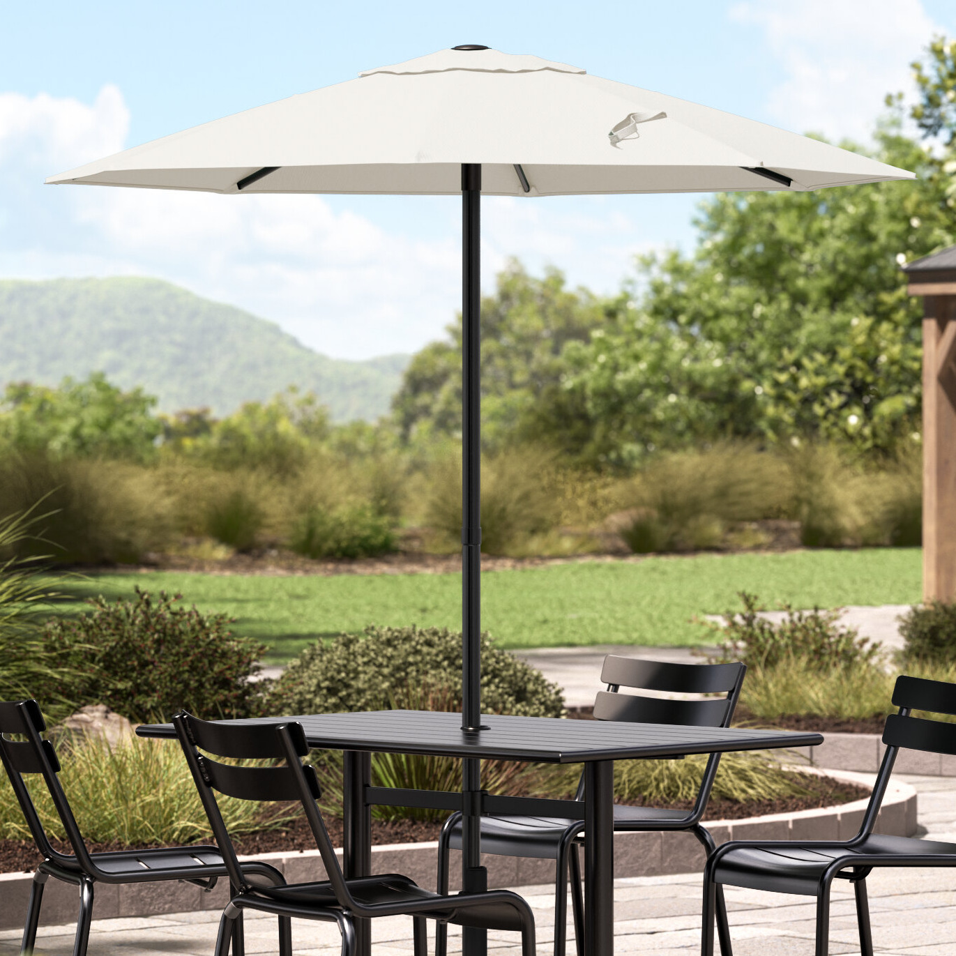 Enjoy the outdoors under the pleasant shade of this Lancaster Table & Seating 6' fossil white push lift black steel umbrella!