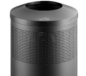 Equip your facility with this Lancaster Table & Seating 23 gallon black perforated powder-coated metal round decorative waste receptacle. The round design fits nicely into corners and other small spaces, and it blends well with any environment. Plus, the 23 gallon capacity makes it a great option for any office, lobby, or retail store.