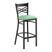 Black Finish Cross Back Bar Stool with 2 1/2" Seafoam Vinyl Padded Seat - Assembled Find a different product