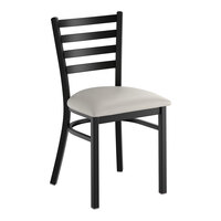 Black Finish Ladder Back Chair with 2 1/2" Light Gray Vinyl Padded Seat - Assembled Find a different product