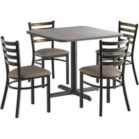 36" x 36" Reversible White / Gray Slate Table with 4 Distressed Copper Ladder Back Taupe Vinyl Chairs Find a different product