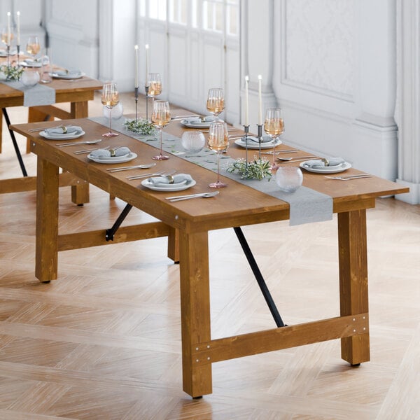 Vineyard 7' Barrel Brown Wood Folding Table