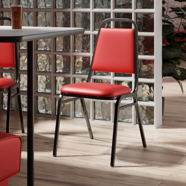Square Back Banquet Chair with Tan Vinyl and Black Frame