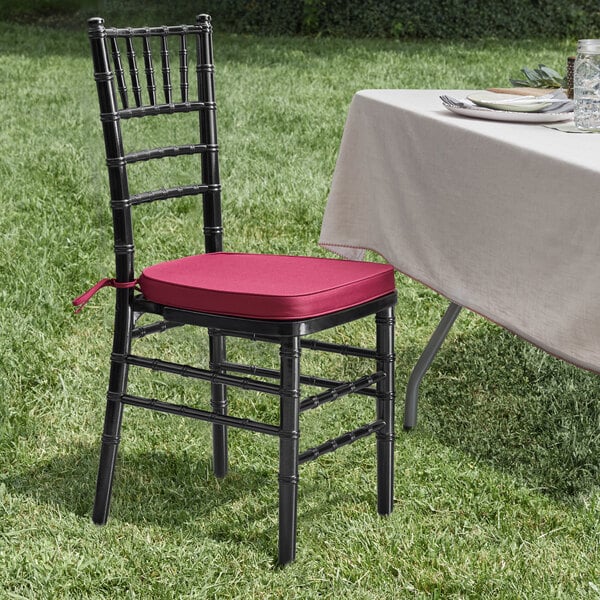 Mahogany Wood Chiavari Chair with Wine Red Cushion