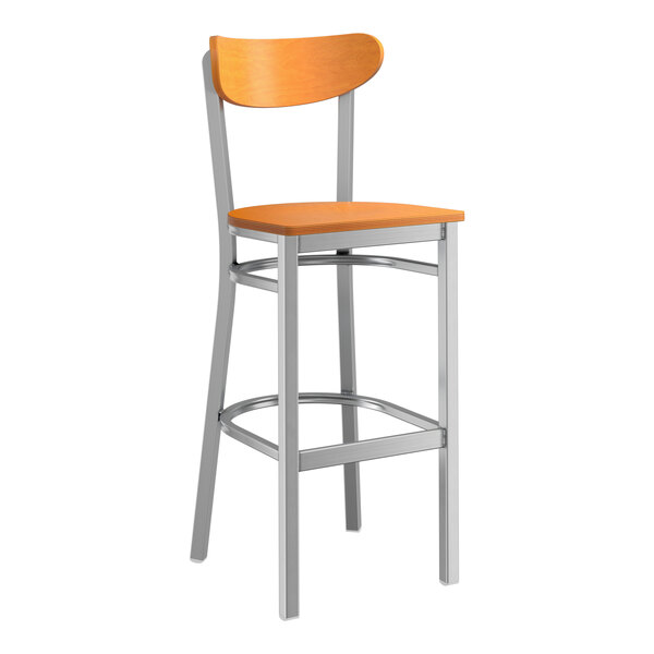 Boomerang Clear Coat Finish Bar Stool with Cherry Wood Seat and Back