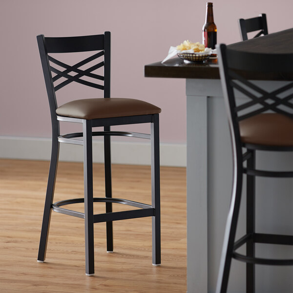 Boomerang Black Finish Bar Stool with Light Brown Vinyl Seat and Antiqu...