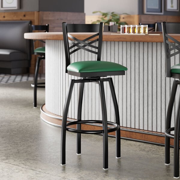 Boomerang Black Finish Bar Stool with Green Vinyl Seat and Driftwood Back