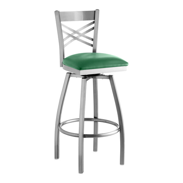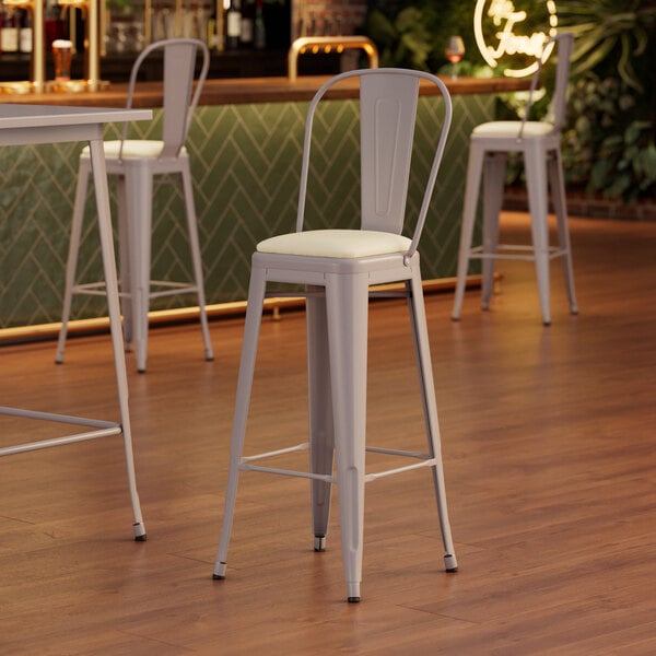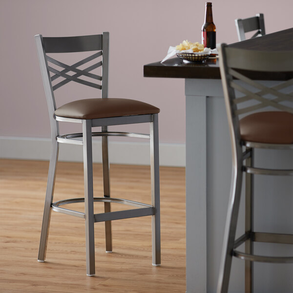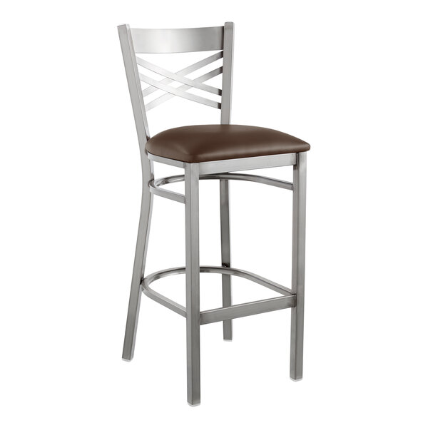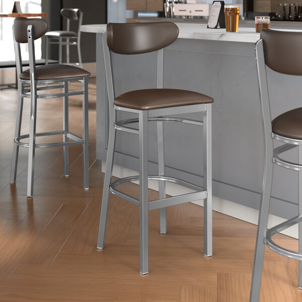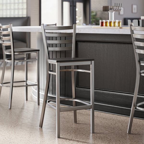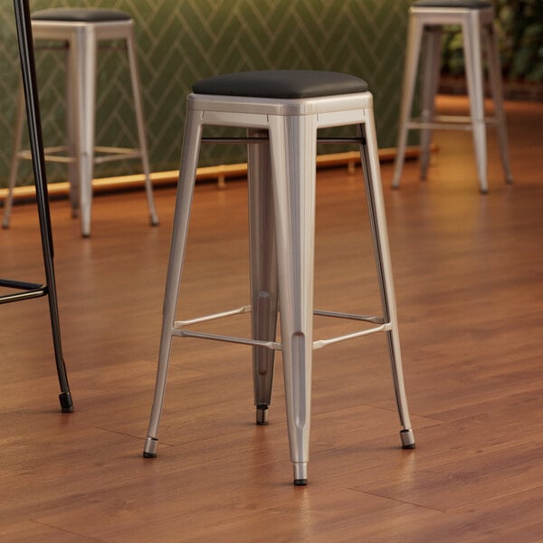 Alloy Silver Indoor Cafe Barstool with Black Vinyl Cushion