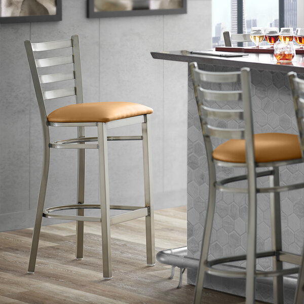 Vintage Finish Wood Ladder Back Bar Stool with Black Vinyl Seat - Assem...