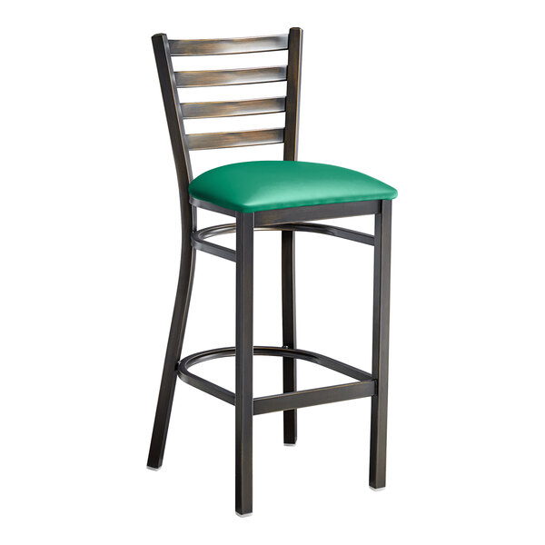 Boomerang Black Finish Bar Stool with Green Vinyl Seat and Vintage Wood...