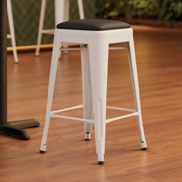 Alloy Pearl White Indoor Backless Barstool with Black Vinyl Cushion